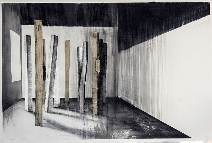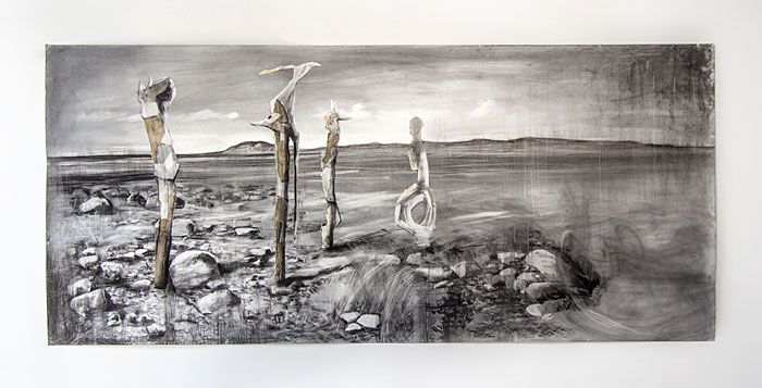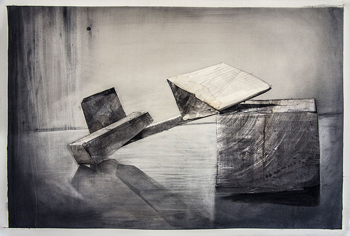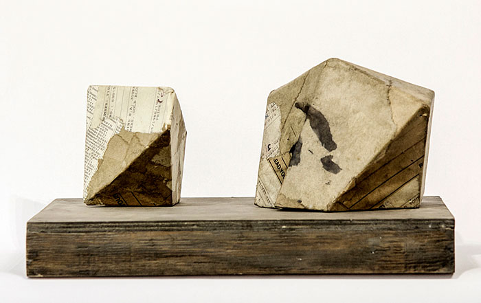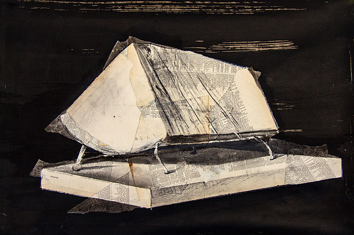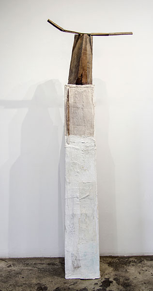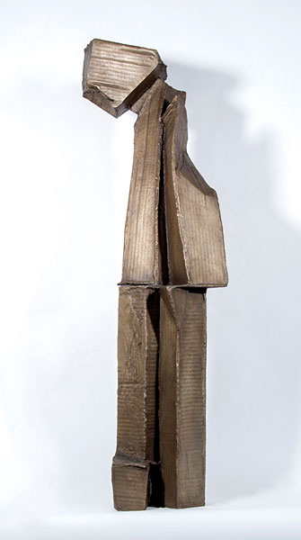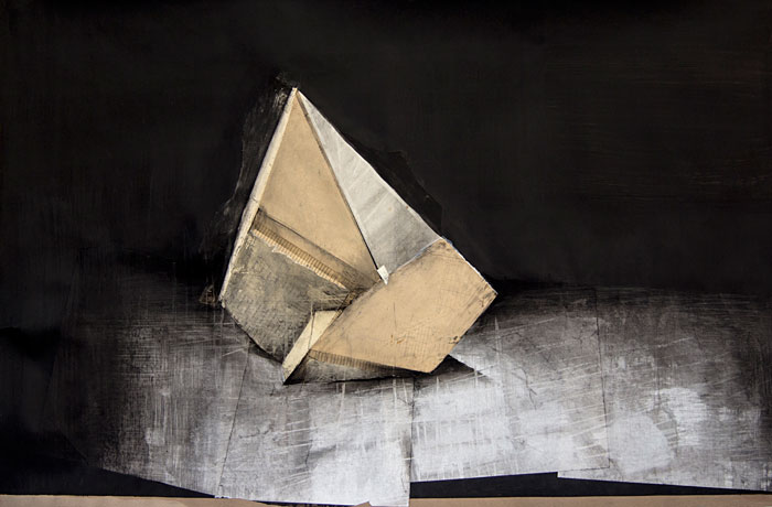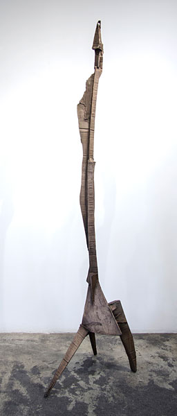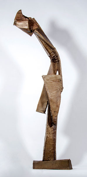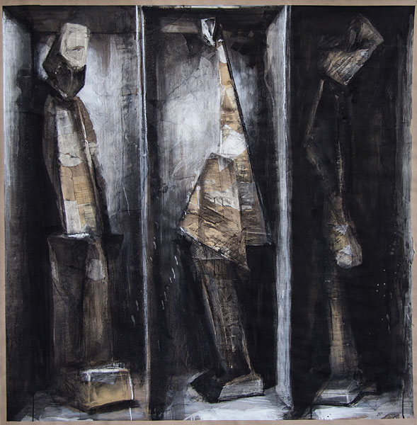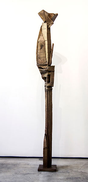 In Critical Mass, Olivier works in various media such as sculpture, drawing and installations. Using cardboard to sculpt with, Olivier intuitively creates forms and figures. He sees his position as an artist as that of a dragoman, an interpreter of the formless and the invisible, facilitating communication between the soul and matter. It is this process that contributes to his choice in materials. The present – which is what he focuses on - requires an immediate response, an expeditious choice of materials.