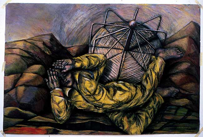 The drawings on this exhibition are drawn in charcoal and pastel on large sheets of 400gram Arches paper. They speak about a deep sadness, an anxiety, and a fear of life, these feelings stem from an emotionally deprived childhood, creating feelings of never being good enough which have stayed with me well into adulthood.