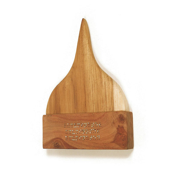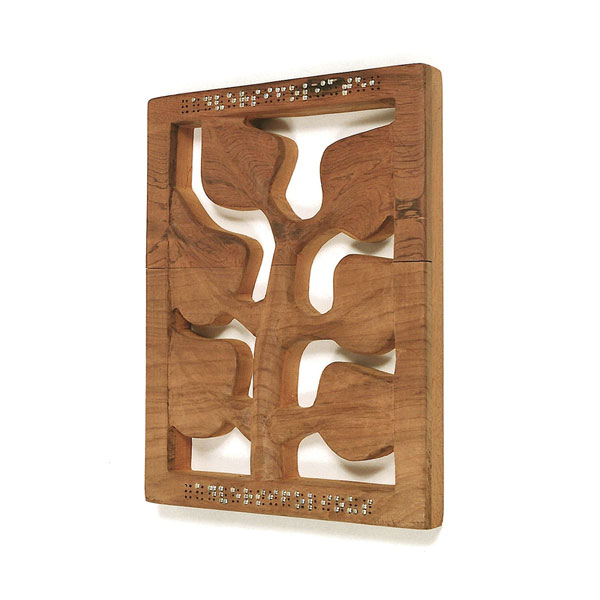 Each work is labelled in a complex Braille essay whereby the blind enlighten the bewildered sighted. By their special magic they dictate the most abstruse texts through their fingertips. Their nescience turns into prescience by which they help even the visual expert to 'see'.