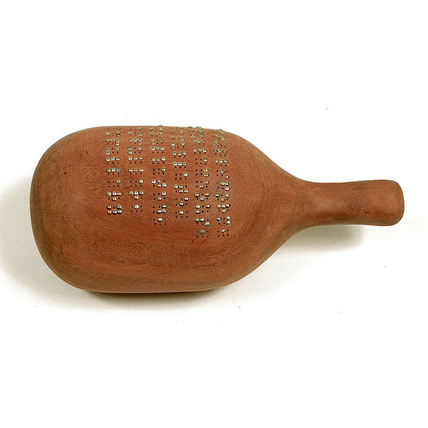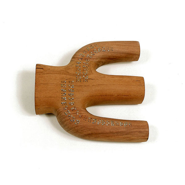 In an inversion of power relations, the work creates a dependency on the touching and reading skills of blind guides. Without blind people in attendance, the Blind Alphabet remains lost, - an exercise in aesthetic futility.