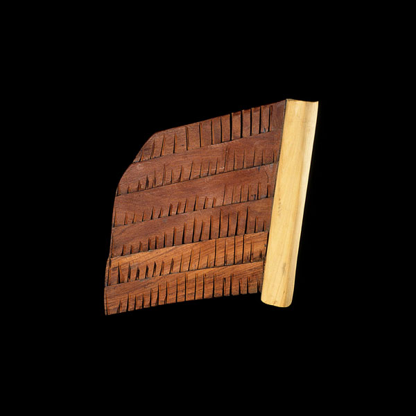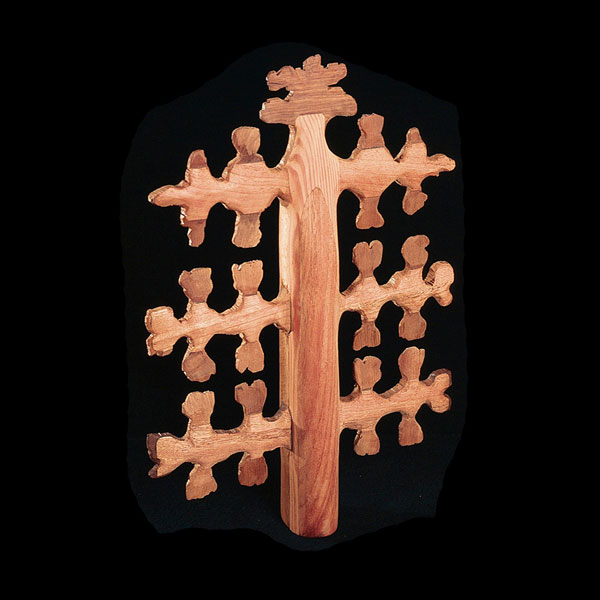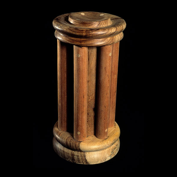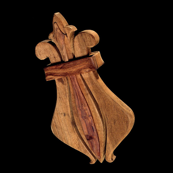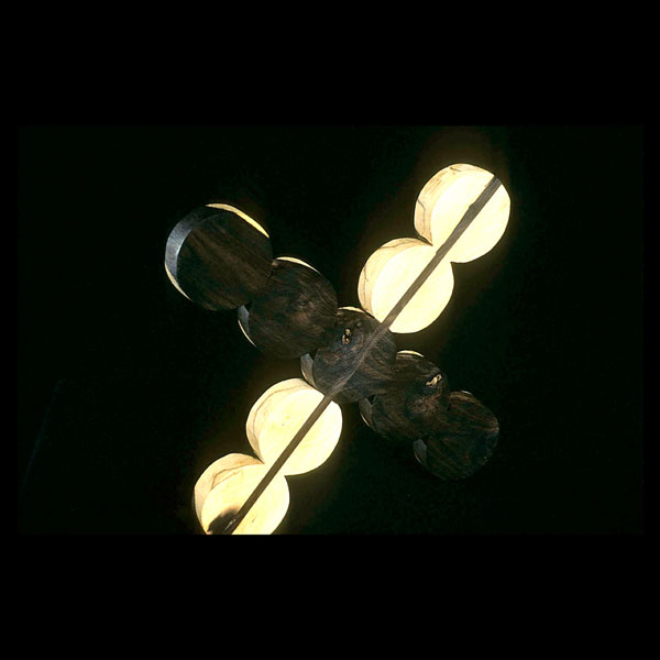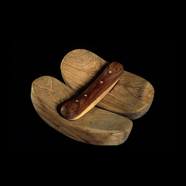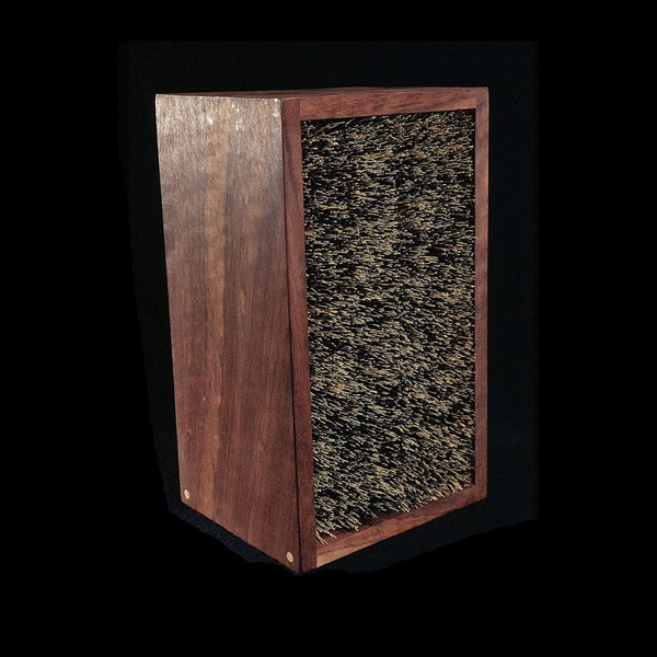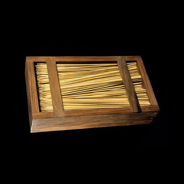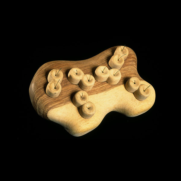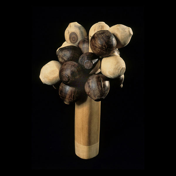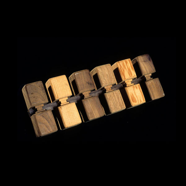 The sculptures are hidden from clear view by being placed in boxes, where gallery rules prevent them from being opened by the sighted. When blind people visit art galleries they are usually guided to find sculptures, and to see that they don't damage anything. The units of the Blind Alphabet are so conveniently close together that the blind are not lost. Each piece is of a manageable size and height, near at hand, so that it can be picked up and fondled close to the body, over a basket, where it won't fall to the ground. BLIND ALPHABET ABC has been extensively exhibited, and even though the blind have actively indulged in it, they have yet to cause any damage.