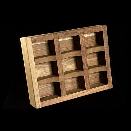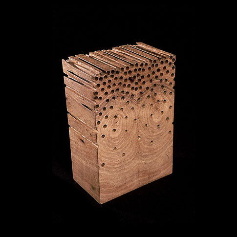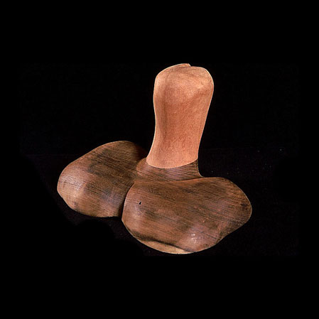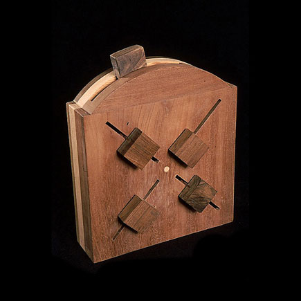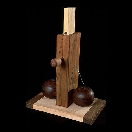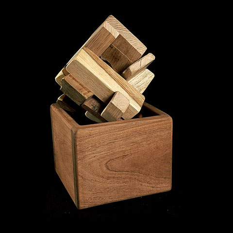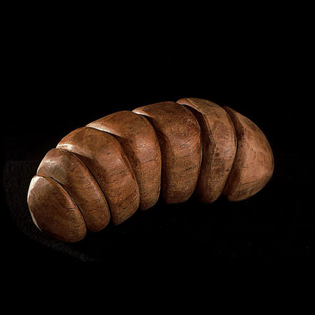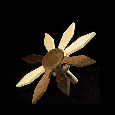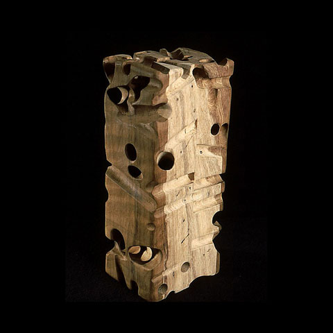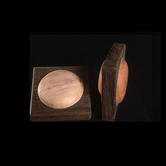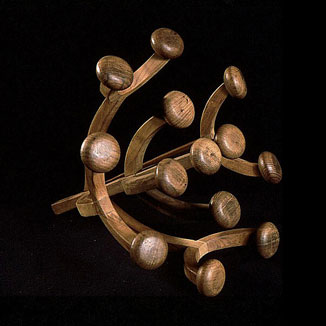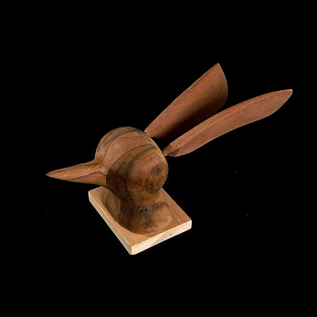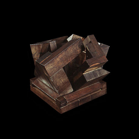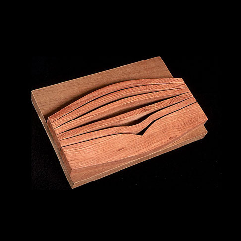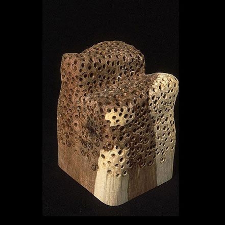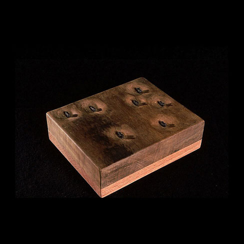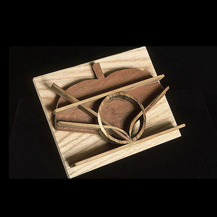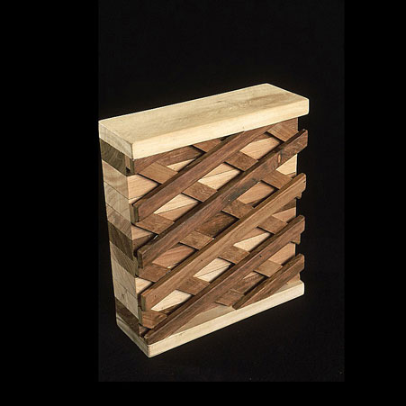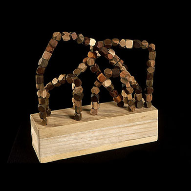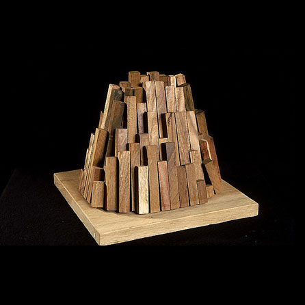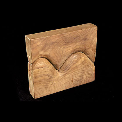 The sculptures are hidden from clear view by being placed in boxes, where gallery rules prevent them from being opened by the sighted. When blind people visit art galleries they are usually guided to find sculptures, and to see that they don't damage anything. The units of the Blind Alphabet are so conveniently close together that the blind are not lost. Each piece is of a manageable size and height, near at hand, so that it can be picked up and fondled close to the body, over a basket, where it won't fall to the ground. BLIND ALPHABET ABC has been extensively exhibited, and even though the blind have actively indulged in it, they have yet to cause any damage.