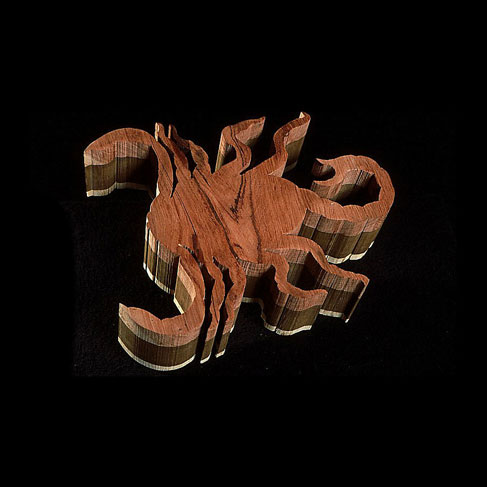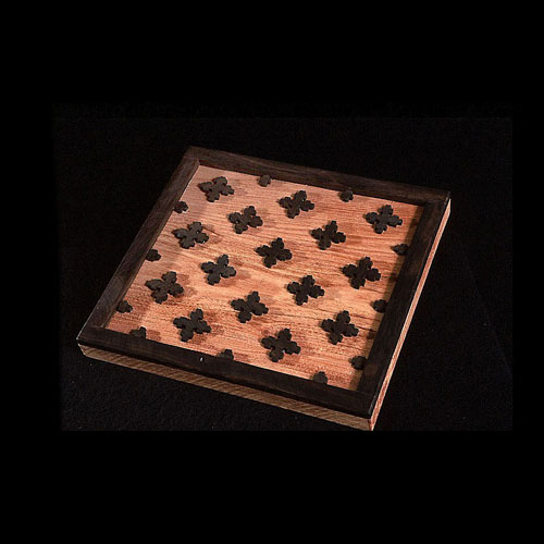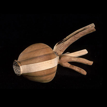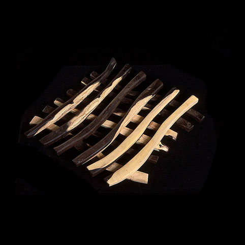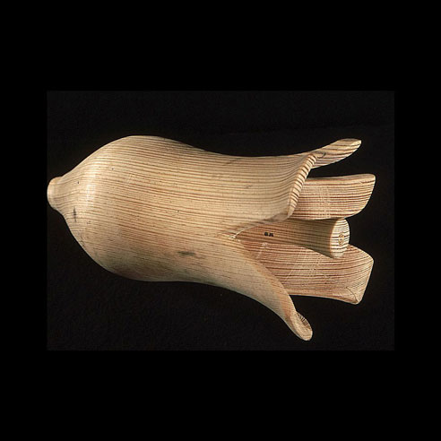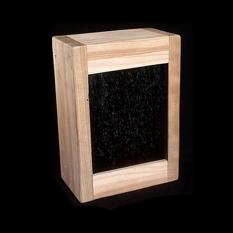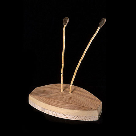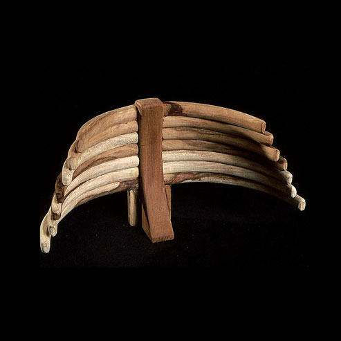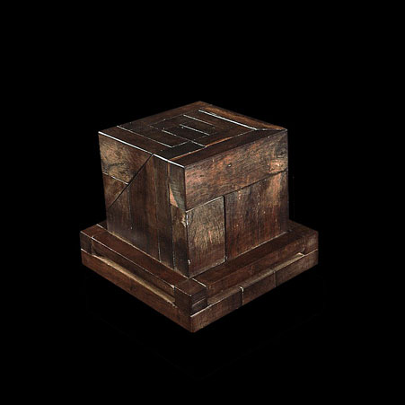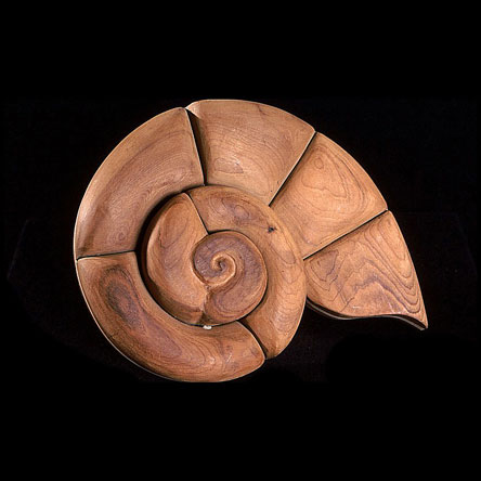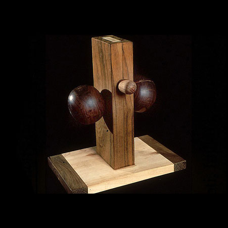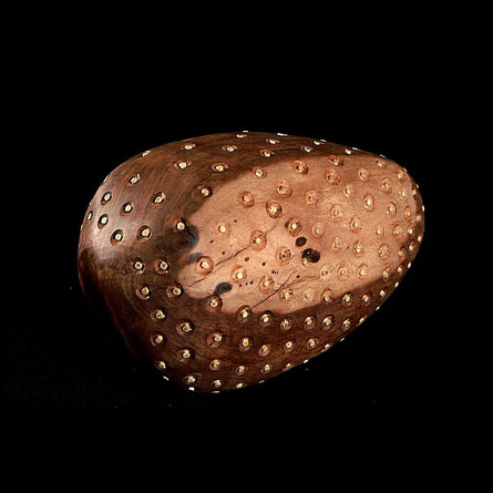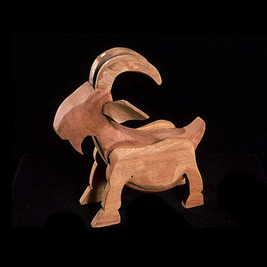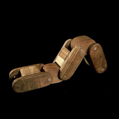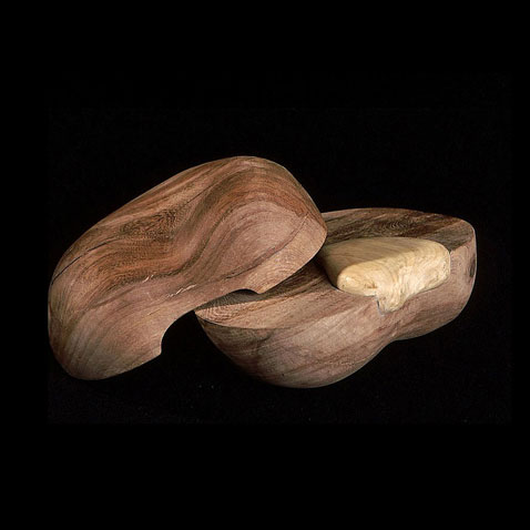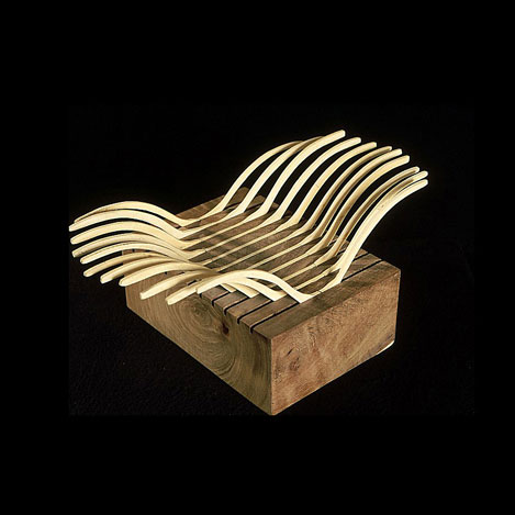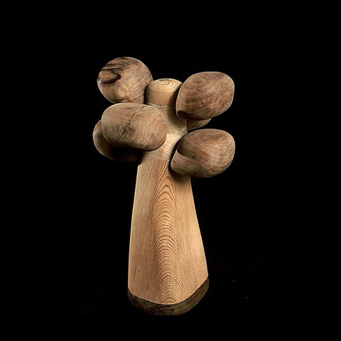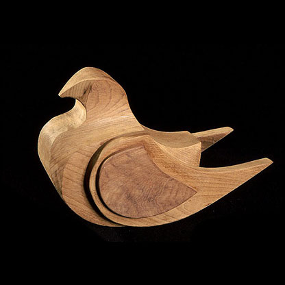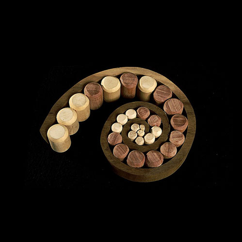 The sculptures are hidden from clear view by being placed in boxes, where gallery rules prevent them from being opened by the sighted. When blind people visit art galleries they are usually guided to find sculptures, and to see that they don't damage anything. The units of the Blind Alphabet are so conveniently close together that the blind are not lost. Each piece is of a manageable size and height, near at hand, so that it can be picked up and fondled close to the body, over a basket, where it won't fall to the ground. BLIND ALPHABET ABC has been extensively exhibited, and even though the blind have actively indulged in it, they have yet to cause any damage.