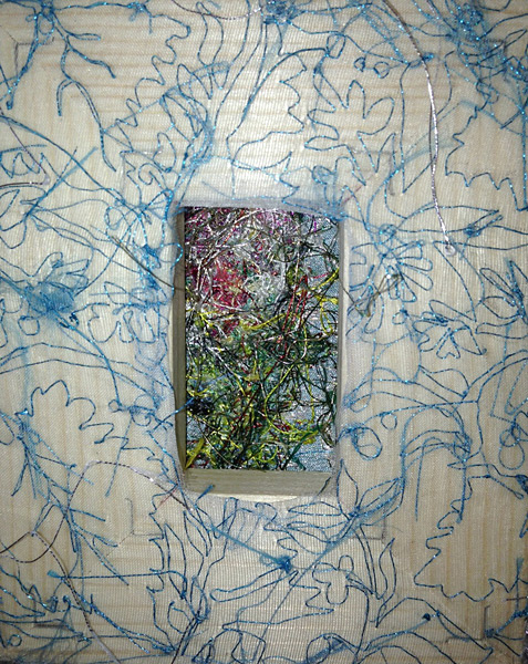 Hand embroidered with silk and metallic thread on vintage silk sari.