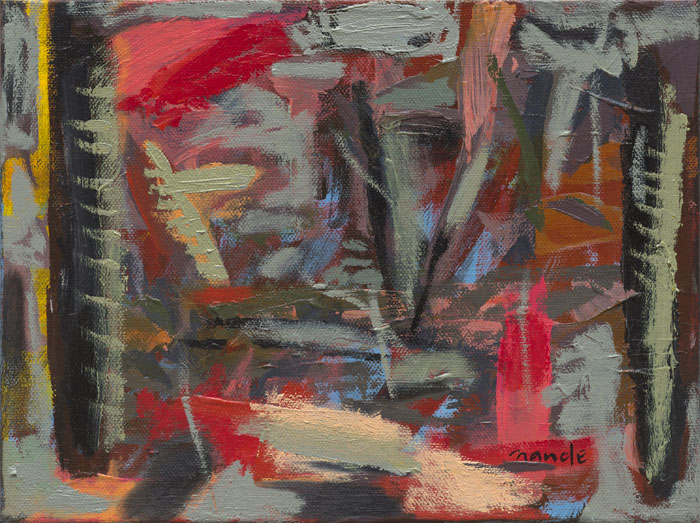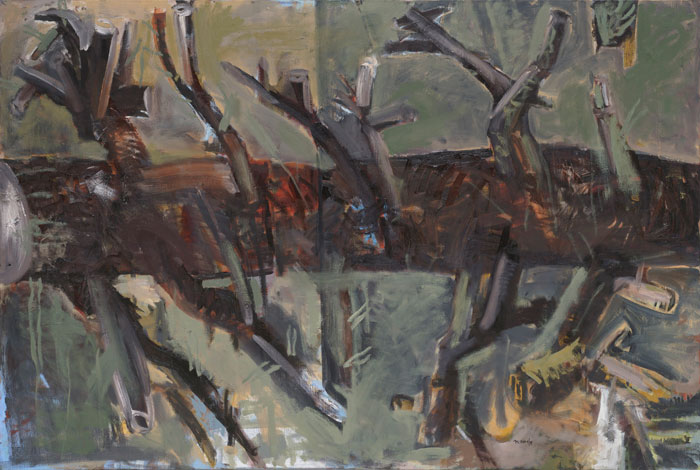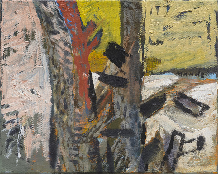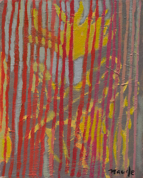 One does not think about painting when one paints. At best the making process allows one to drift among impulses and options. Decisions may be deferred or revised in a way-finding exercise that allows associations to at first multiply and then be subtracted until a certain mood is established in which one can be reconciled with oneself - this may be fearsome or joyous. A dialectic resolves between identity and diversity. What is the sound of one hand painting etc?