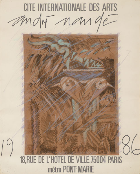 Artist:  André Naudé Title:  Cite Internationale des Arts, 1986 Medium: Mixed media on brown paper on poster Size:  61 cm x 49,5 cm Price on Request