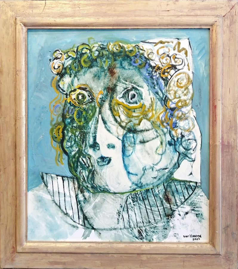 In their vibrancy of image, colour and texture, his paintings mirror energy and raw power. It is where he confronts the viewer with visions that will unsettle, intrigue and challenge. The vigorous application of paint with brush or knife, leaves a three-dimensional surface that breaks out of the safety net of flat colour to actively reach out and invade the spectators space. The urgency of line and dynamics of colour give the images a feeling of motion and activity which evolves into a stream of consciousness as the faces speak from their turbulent and passionate existence.