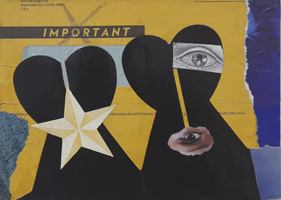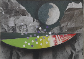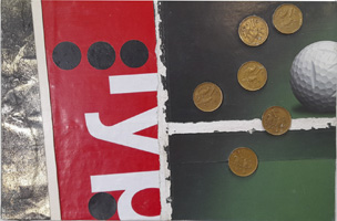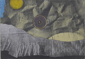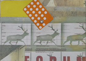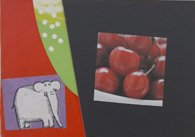 BRENT RECORD Brent Record known for his humorous titles to his collages. Landscape invaded by weather, Genuinely false rumours, Best before next year, Bubbly balloon barcarole, Cheap flight, Cat at the portals of doom and many more.