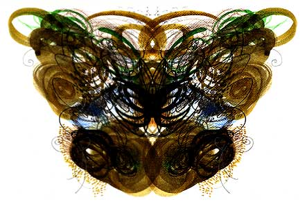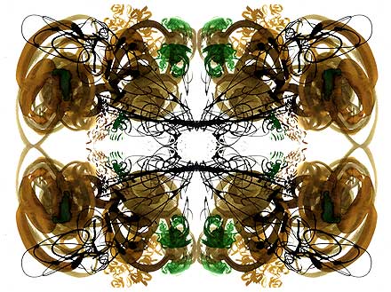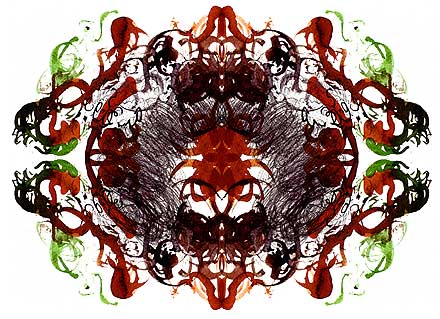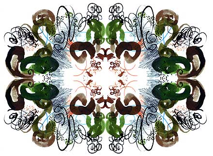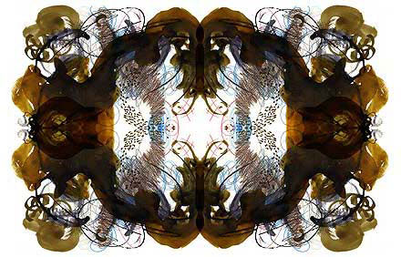 Yet these kaleidoscopic emblems, reminiscent of Rorschach ink blots,