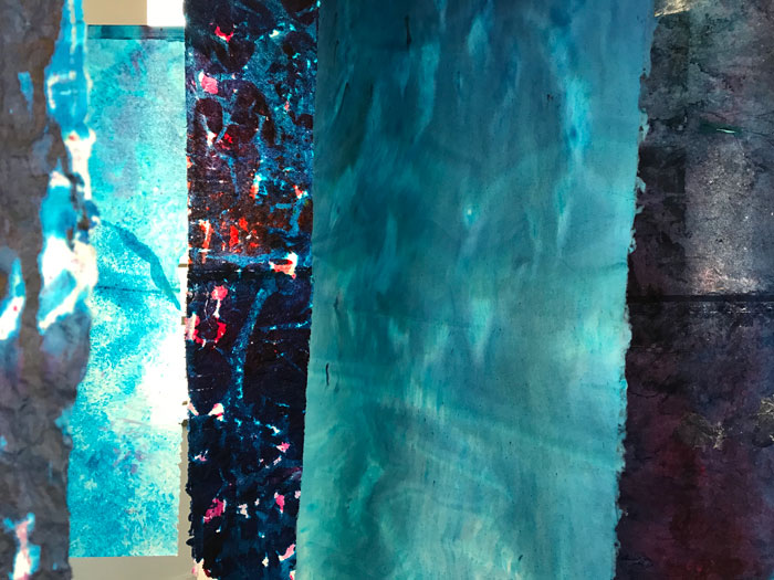 A seemingly fragile surface resists. Pushing through, seeking the threshold. Marks and colours morph together organically, living and breathing -