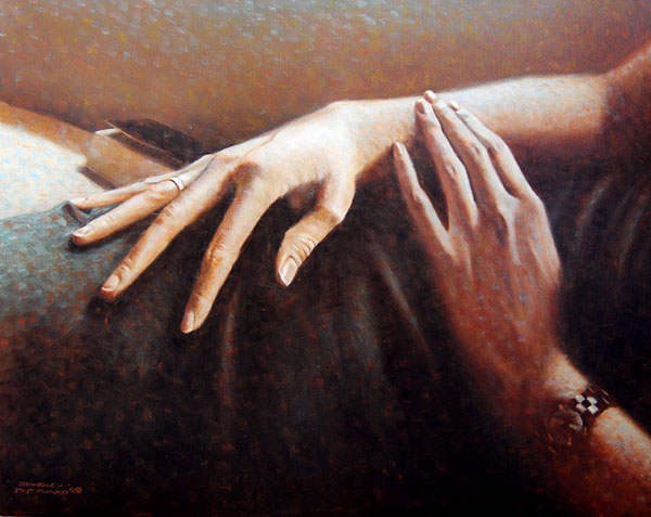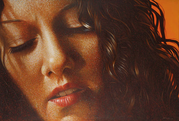 The works that is coming out of my studio lately is all an interesting experience of delving into details of my usual work,which normally involves full scale female figures mostly. Going into this view of detailing opens up a whole new concept of looking at my painting world. It brings new elements and feels all realistic and abstract,modern and old. This is hands, feet and faces that each carry with them a hefty amount of individuality and with interesting light it makes all the food one needs to make a strong painting. They are bold, fun, light and strong in simplicity.