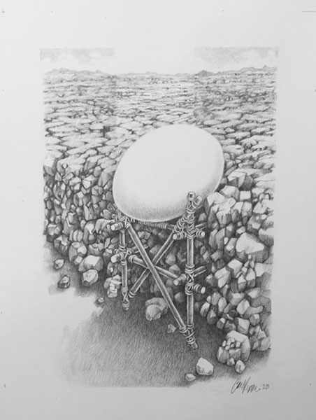 Artist:  Carl Jeppe Title:  Scaffold Medium: Pencil Size:  28 cm x 21 cm Price on Request Message of hope: Life, any life, is precious and fragile. The world is facing an enormous crisis; the Covid-19 pandemic is eroding away at life as we know it and what we take for granted. It is claiming lives indiscriminately and it is wrenching loved-ones away from their families. Meanwhile there are thousands of dedicated people who are working tirelessly and who are placing themselves in real danger to keep us safe. Thank you all.