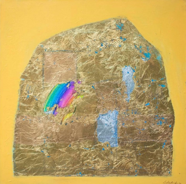 Gold/silwerleaf, ink and oil on canvas 80 x 80 x3 cm