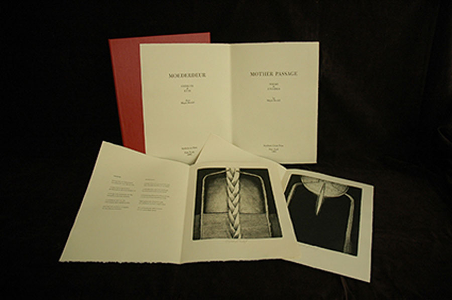 Artist:  Majak Bredell Title:  MOEDERDEUR/MOTHER PASSAGE. 1992 (34 x 24cm) edition 30 Medium: folded-folio artist book with 20 etching & 20 poems Price on Request