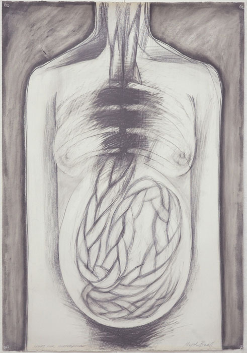 Artist:  Majak Bredell Title:  study FOR MOTHER PASSAGE. 1992 (90 x 64cm) Medium: gesso, graphite & charcoal on Arches Cover paper Price on Request