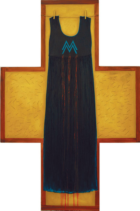 fabric & oil on shaped masonite panel