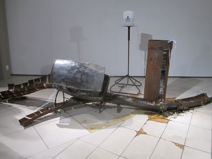 Zelda Cloete's Basick used her inspiration - activist Ai Weiwei - by taking school desks and stacking them on top of each other in a chaotic manner. The school desks comments on current problems with the basic educational system in South Africa.