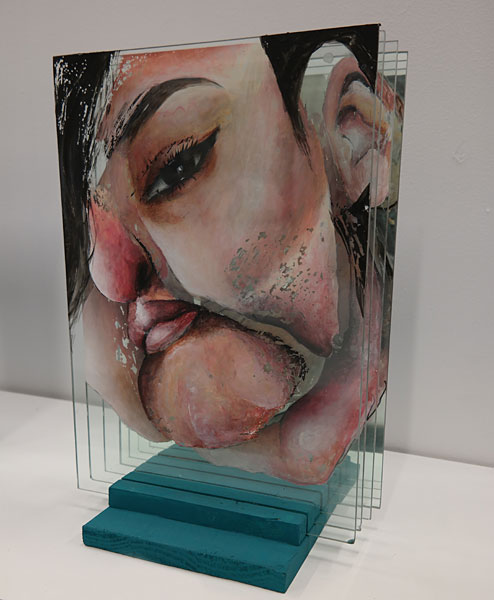 What is identity? Identity is the way we perceive and express ourselves through various factors and conditions such as ethnic heritage, sex, or gender playing a role in defining one's identity. The third year students from the Faculty of Art, Design and Architecture of the University of Johannesburg explored personal experiences of how they see themselves or are perceived within a complex South African identity in their end-of-year exhibition. An individual's identity can consist of multiple and intersecting factors. Various student explored the spiritual markers of their identities. Nazeerah Jacub's work explores her hybrid identity as a young Muslim and Indian woman. She makes use of the mus'Allah (prayer mat) as her canvas and explores it as a means of expressing elements of confinement of her Muslim identity as well as a form of expression of cultural and social heritage. Philisiwe Nene also refers to cultural traditions in her charcoal and chalk drawings. Her works offer an understanding to the traditional rituals performed by sangomas or traditional healers in honoring the ancestors. Various elements are incorporated in her works such as beads, animals, bones which reiterate Nene's belief that the ancestors watch over their subjects. Riccardo Montali works deal with his own identity and the 'variety' of 'selves' or identities through various sculptural heads using alternative materials such as buttermilk and soil. Nicole Swartz, Black market silicon and cooking oil, Arcylic, watercolor on glass and mirror One's identity is closely linked to one's body. Our appearance shapes how we see ourselves or are perceived by others. Nicole Swartz's "Vanity Series" analyzes notions of beauty. Her images investigate horror stories of cosmetic surgery. The works deal with the extent women go to be 'beautiful'. The glass acts as a means to manipulate the portraits and expose the multiple facets of what beauty entails. Melissa Magua abstracts the inner palm of the hand in "Weaving Identity". Magua referenced these close-up line pathways as a reflection of her identity as a South African Lebanese. The works become maps of line which informs her past and present. Kelly McLoughlin also deals with the female body and societal's ideals of the feminine form. She explores the destruction of self-worth of women from societal pressures of beauty. McLoughlin makes use of Bitumen (liquid tar) in her drawings adding a crudeness to the contrasting soft female form. Her prints show the body wrapped tightly creating unattractive bulges. Wanda Mbonane's dark portraits explore her identity as a female artist in contemporary society. The faces within each of the portraits capture the primal desire of singing. She reapporiates old newspapers as her canvas as a reflection of the dependence on the media to launch one's career as an artist. Mbonane explores her fears and anxieties of failure. Kelly McLoughlin, Size really does matter series Identity can change throughout one's life. Identity can be influenced by the decisions one makes, for example, the friends one chooses, adopting certain fashions, and align oneself with specific political beliefs. Rankin Mostert depicts portraits of rebel and free spirited personas with tattoos, eccentric hair, and piercings. Using spray paint and stenciling as a reference to graffiti culture, Rankin explores tattoos and piercing as an alternative form of beauty just as graffiti can be seen as an alternative form of art. Mikylah Spangenberg's works explore the interrelation between the organic and inorganic, humanity and technology, with specific reference to the stereotype associated with gaming. Spangenberg's large-scale self portraits sees her portray herself with 'robotic' eyes and facial defects. The expressions are aggressive and confrontational questioning our dependence on technology in creating our identities. Mikylah Spangenberg, Aggression towards society, Chalk and charcoal on masonite Other students explored the identities of others and how their identities can be perceived or changed by outside circumstances. Kiveshan Thumbiran deals with notions of evolution. Using toy animals and pen drawings, he hypothesizes how various animals may evolve and reconstructs them into new forms that are absurd. Motheo Moiloa's paintings and drawings depict characters standing on the rooftops of shacks. Moiloa explores spiritual qualities where his subjects are depicted as winged angelic beings "living above the circumstances" of their socio-economic issues. Paula Schreuder's works look at how one's past can influence one's present through repression and suppression. Using medals as reference to moments in her childhood where one experiences both triumph for the achievement and anxiety at the pressure of winning. The idea of identity, both individual and social, often comes under scrutiny in art. Our identities are shaped inadvertently by political, social, religious and cultural influences and beliefs. Evident in this year's third year collective is the conflict of what is in an identity within our diverse South African context.
