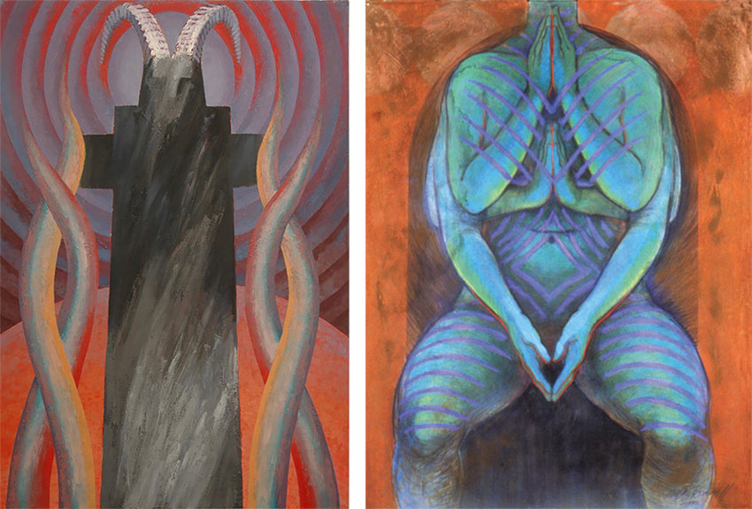 ![]() Left: THRESHOLD FIGURE 1994, Oil on canvas, 128cm x183cm | Right: INSCRIBED BODY 2002, Mixed media on Stonehenge paper, 97cm x 127cm
