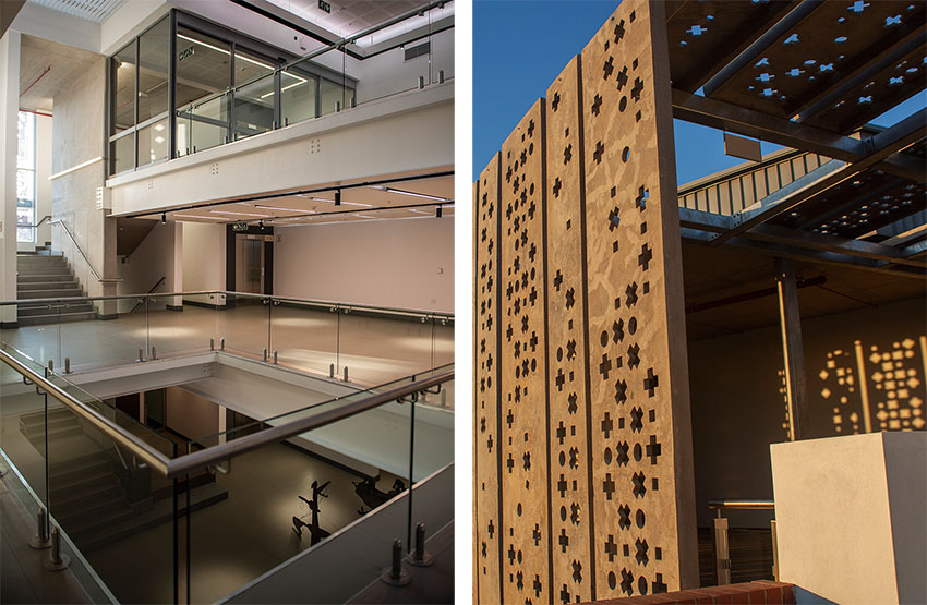 The Javett Art Centre (Javett-UP) stands tall in Pretoria's busy Lynnwood road overlooking the University of Pretoria's main campus. The building offers something new to Pretoria, specifically in the art and museum arena, offering the public the opportunity to see iconic works of South African art and priceless treasures such as the Mapungubwe Gold collection. Possibly likened to the Zeitz MOCCAA in Cape Town, the modern world-class the space designed by Mathews & Associates links the academic and public through accessibility and appreciation of African art with the aim to create conversations about Africa's past, present and future. ![]() Left: Interior of Javett-UP | Right: Bridge over Lynwood Road