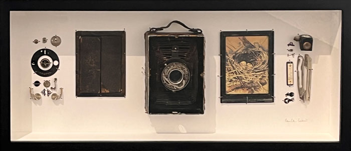 Camera parts, board, wood, trace wire, sleeves, print on paper, plexiglass