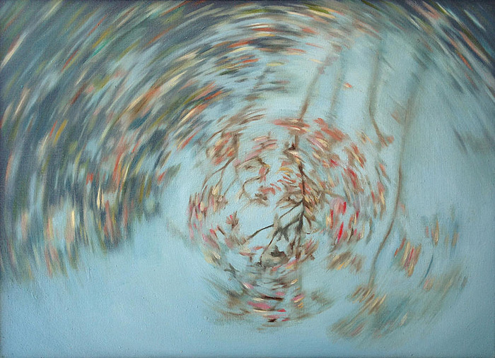 An Interlude series I - IXAn Interlude comprised the first 9 of a series of 21 paintings and was part of the Lizamore & Associates booth at the 2014 Turbine Art Fair. "I found it interesting how curious people have been about which came first in this production - the paintings or the video installation. It was in fact the video installation, a collaborative effort with my cinematographer partner, Thomas Pretorius, aimed at creating an immersive experience. The video involved a customised rotating camera mount, with the camera mounted on a 3 metre long motion-controlled slider rig so that it moved in a spiral pattern past tree branches and toward an endless sky. 1,459 Framed stills were captured and stitched together into a 4-minute video to generate the experience of “winding and unwinding". | |