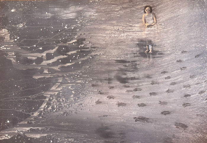 Sampson aims to capture the innate complexities of the delicate fragility of nature when creating the work, ‘Intimate Conversation’. She offers the viewer an irresistible counterpoint into a deeper conversation regarding our interconnectedness and symbiotic relationship with nature. This work is part of Sampson’s recent series, “Rewilding the Feminine” which draws attention to the importance of working closely with nature to bring back natural processes and help restore biodiversity.