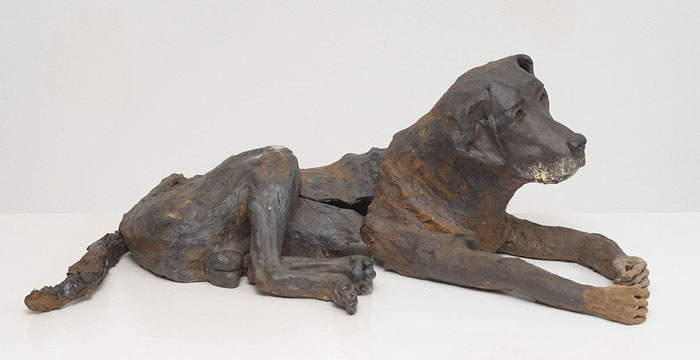 Ceramic sculpture. Medium. Basalt clay, terracotta, manganese, synthetic fibre, bone ash
